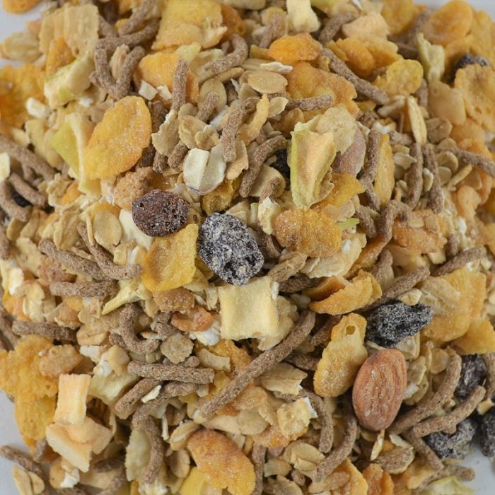 Ingredientes: Avena instantánea, best brand, pasas de uva, copos de arroz, copos de maíz, almendras, manzana deshidratada.